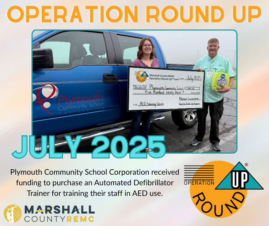 The Operation Round Up program allows Marshall County REMC members to reach out to worthy causes in the community and work together to help others. Thank you to those members who round up their electric bill to the next highest dollar each month.